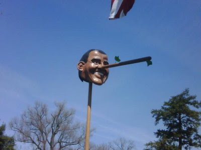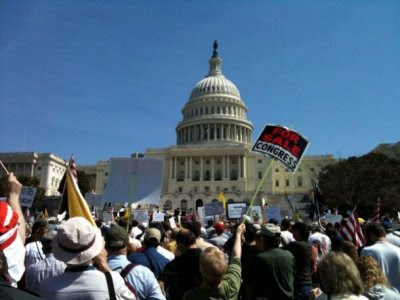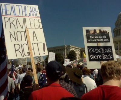 "Tea Party sign threatens gun violence if health care passes."And the author somehow takes offense at this Hitler analogy for President Obama.