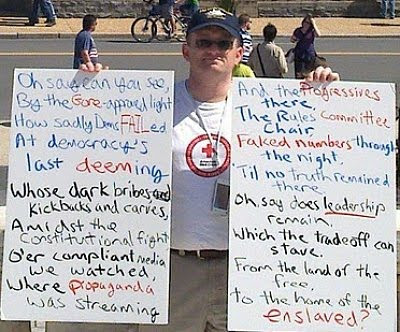 Seems a tad curious that Stink Progress is complaining when, in fact, the Democrat Party is orchestrating a government takeover of a full 48% of the economy (health care, the banks, AIG, GM, Chrysler, the student loan business...).Meanwhile, The Huffington Post breathlessly reported an anecdote that made it appear Tea Partiers are racists -- without audio, video or even named attribution.